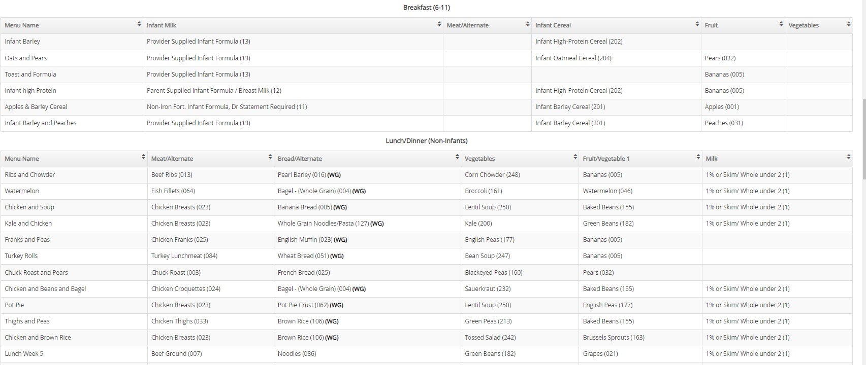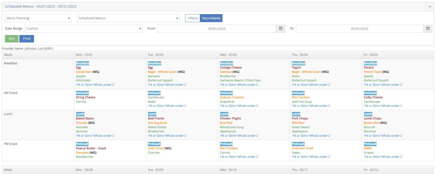 Menu Planning Reports for Providers