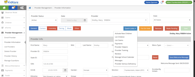 - We have added a new menu to Provider Information called Quick Links. Use this button to access common provider functions directly from the provider profile. Each option opens in a new browser tab and filters automatically to the provider you selected.